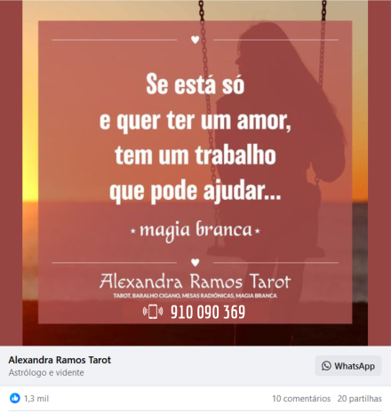 Faço variados trabalhos de magia branca, limpeza de bloqueios, desmancho trabalhos bruxaria e magia, harmonização casais, chamada de clientes, abertura de caminhos, desamarrações, afastamento de alguém indesejado, limpeza energética espaços comerciais ou de casas particulares, corte e eliminação de situações kármicas negativas, aumentar o desejo e a atração entre duas pessoas, mesa radiônica para animais, consulta de cartas, trabalhos espirituais.
